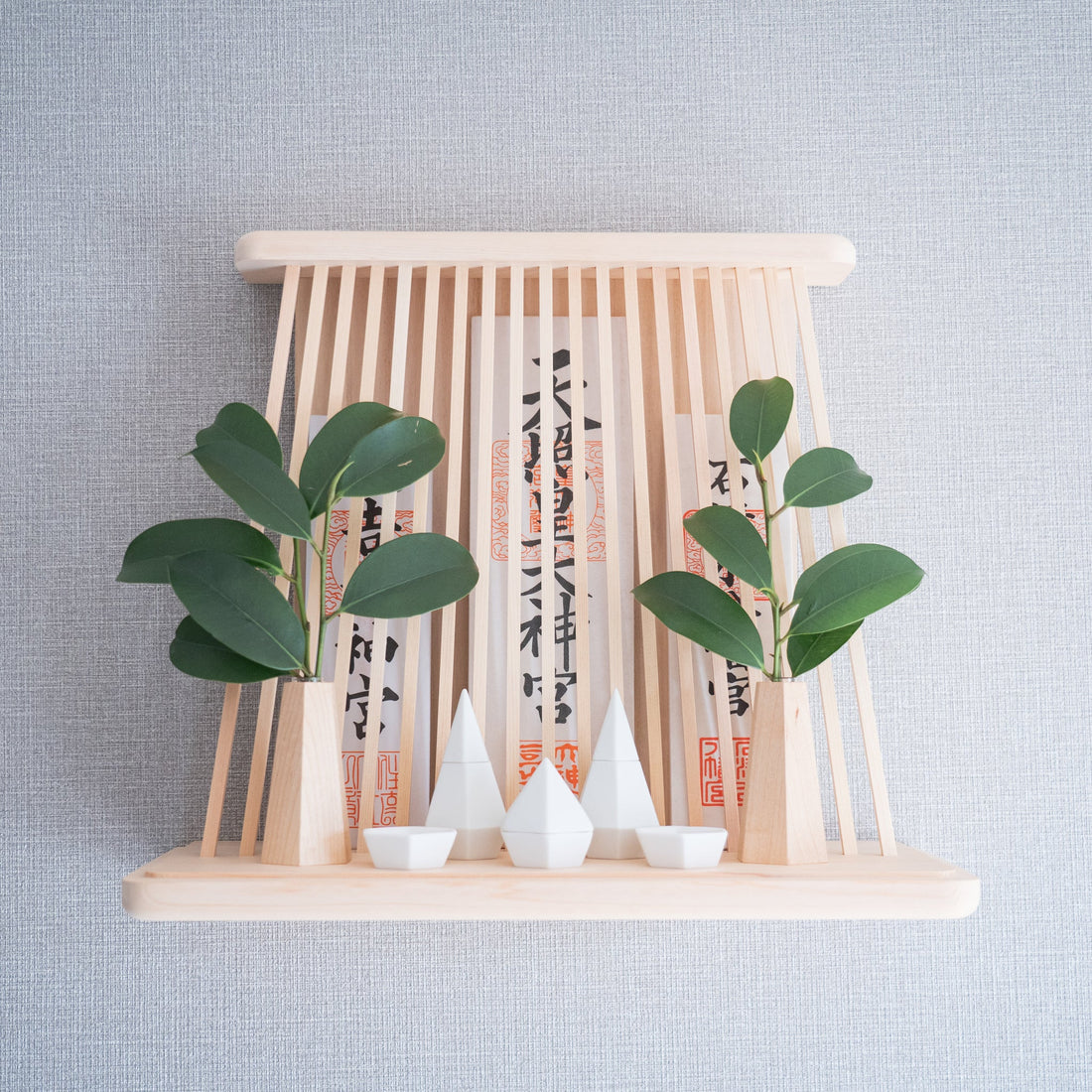 伝統的な神棚の格式を保ちながら、現代のインテリアにも自然に溶け込むスタイリッシュなデザインの神棚「住神 -SUMIKA-」。