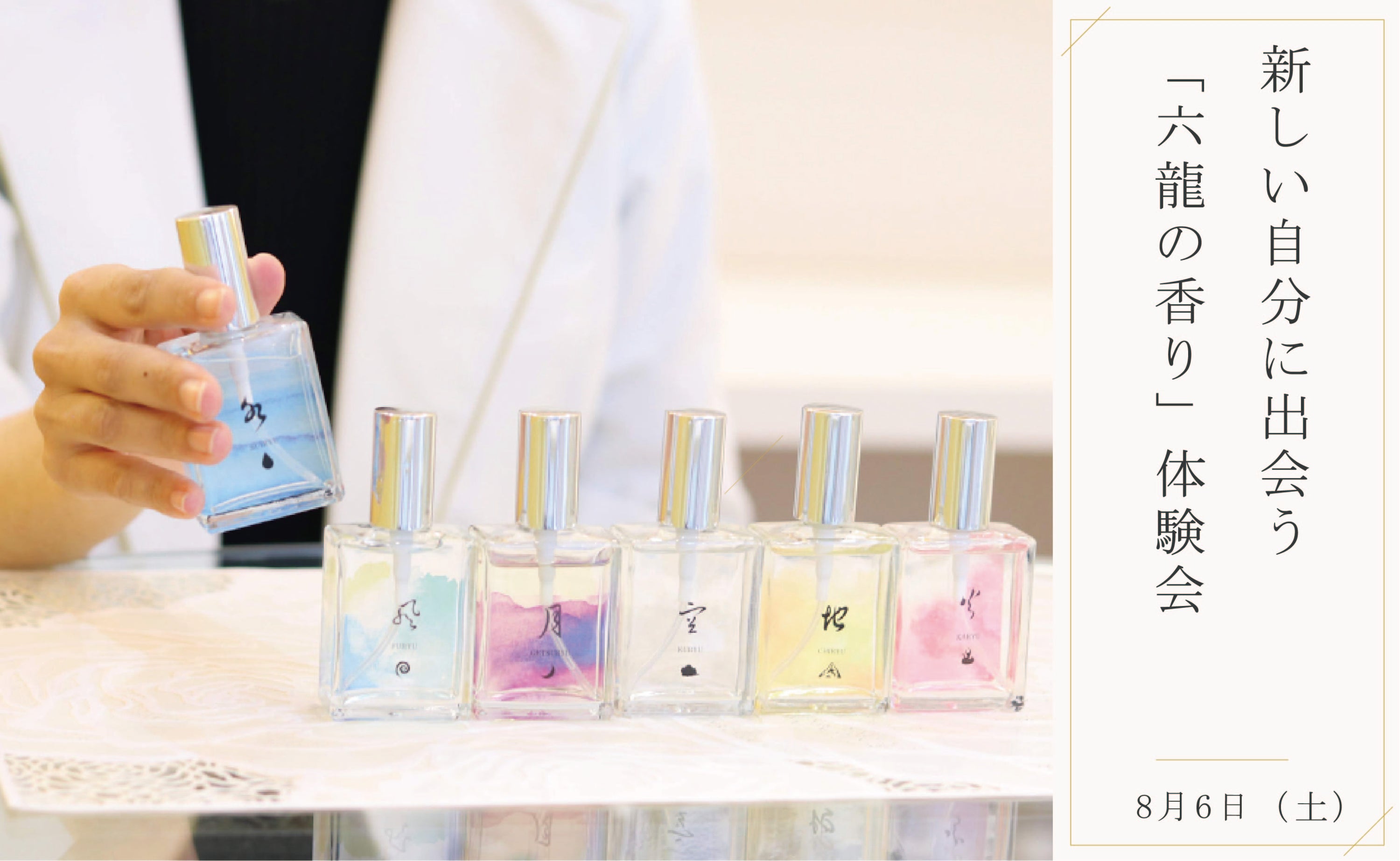 六龍の香りとは、それぞれの龍の長所が生かされた時の〝品上がった〟空気を香りで表現したもの。