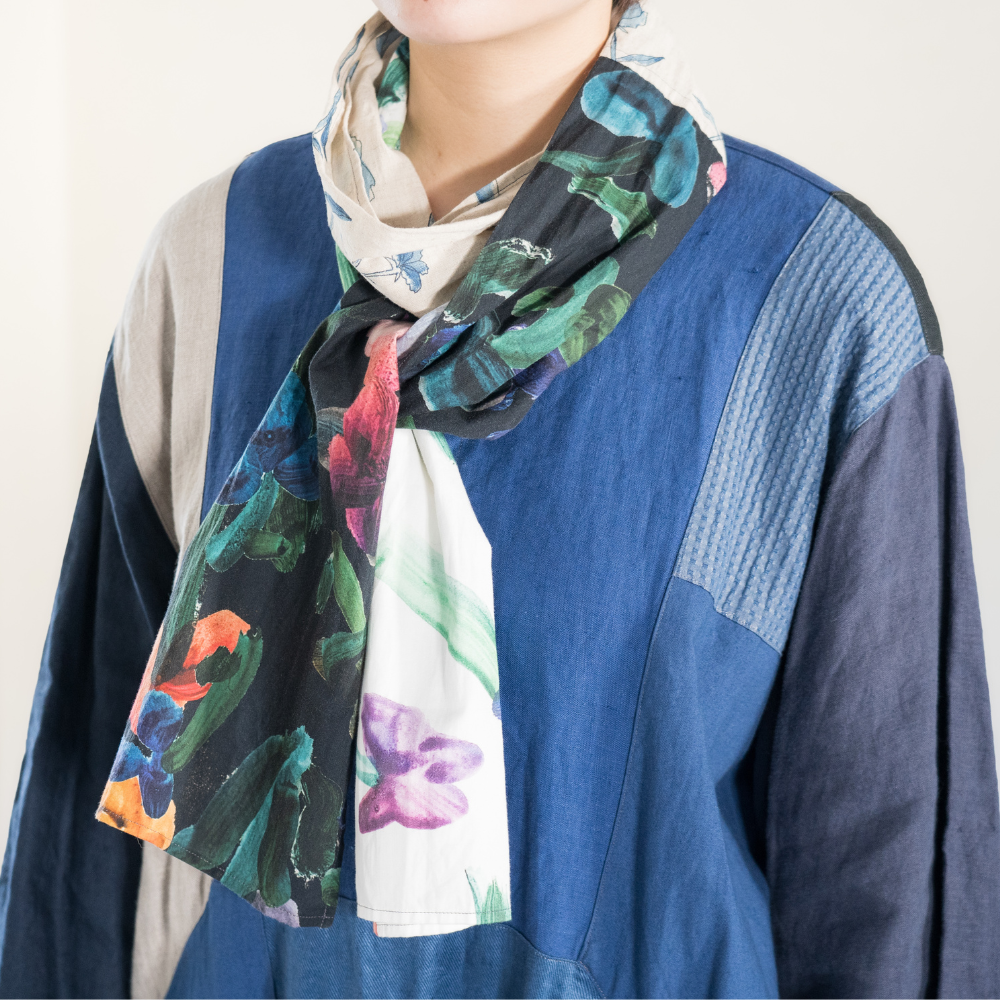 帯はベルトのようにしても、ストールのように結んでも素敵です。