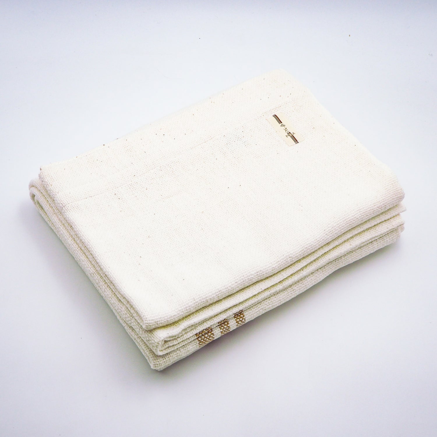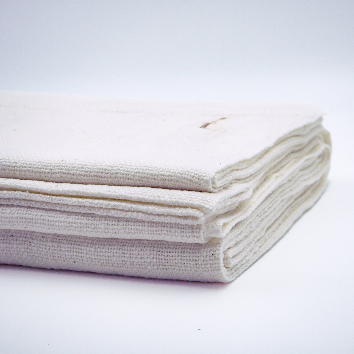 太さが均一でない手紡ぎの糸を荒く織り上げているため、布の表面にふっくらした凹凸があり、触れたときのやさしい肌触りが生まれます。